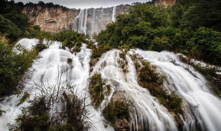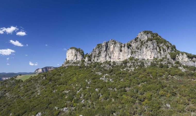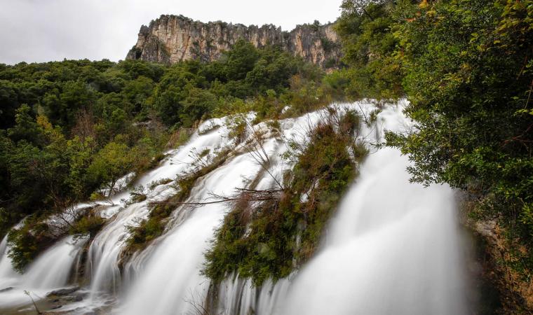 Smooth, vertical walls, covered by holm oaks and filled with Mediterranean fragrances, rise to reach heights of a thousand metres. The Buttes or 'Tacchi' (literally meaning Heels) owe their name to their pointed shape, like the heel of a shoe and characterize the inland landscape of Ogliastra, particularly that of Ulassai. It is a territory rich in underground waters: from the limestone elevations with gushing springs and streams that, during periods of floods, are the origin of evocative waterfalls. Those of Lecorci, half a kilometre from the inhabited area, emerge at the foot of ataccu, not far beneath the cave of su Marmuri, the largest on the Island. The path of the waters continues on downstream until it reaches, after three kilometres, the waters of Lequarci, the other waterfalls of Ulassai, the most impressive in Sardinia.