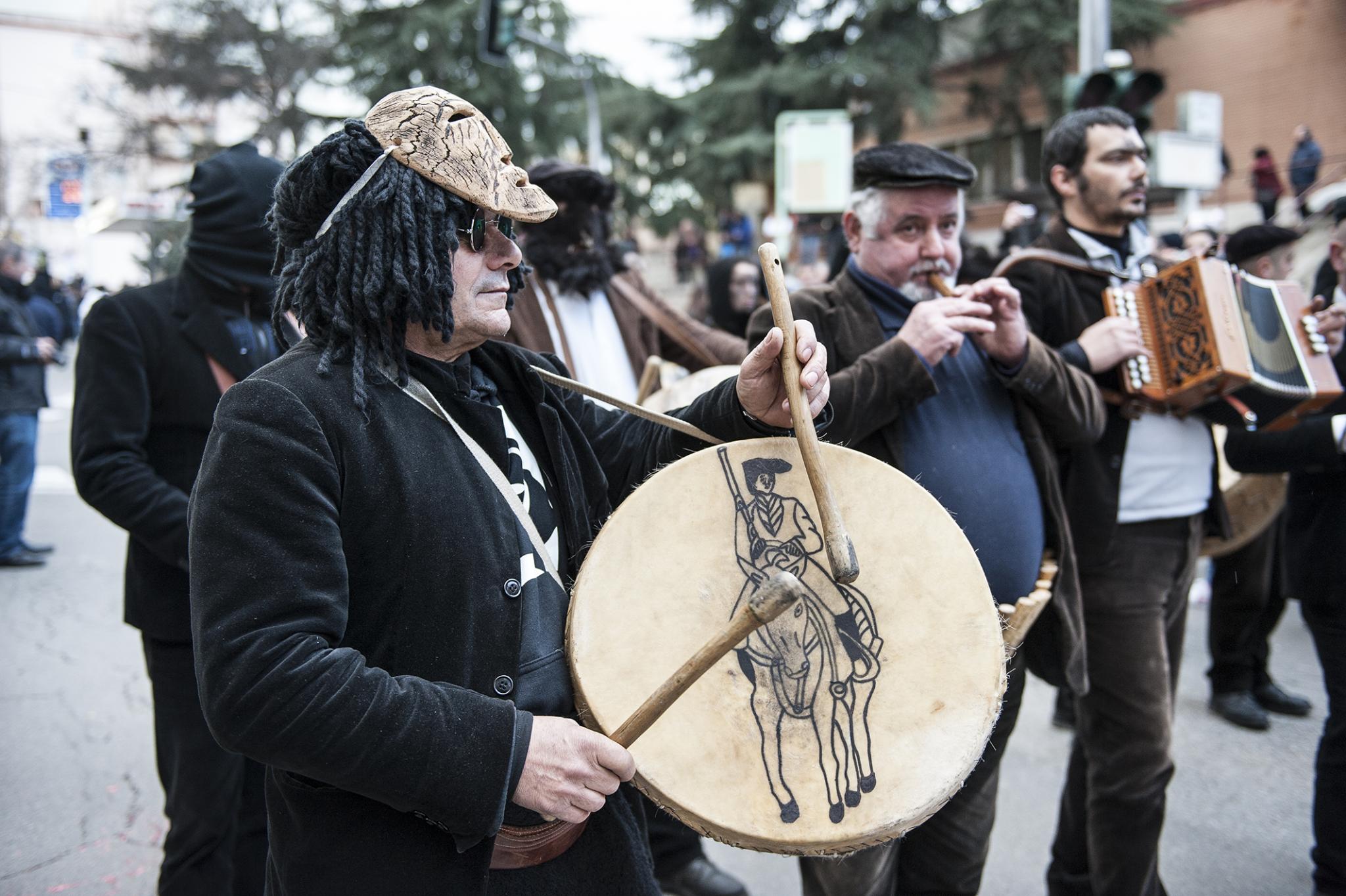 In Gavoi, the name changes slightly. It is su pipaiolu and, along with su triangulu and a particular drum, represents the trio of instruments typical of carnival. They are played during carnival’s ‘Fat Thursday’ with sa sortilla ‘e tumbarinos, the rally of drummers. They are made of goat or sheep skins, subjected to a special process: they are sprinkled with ashes and buried for 15 days, then they are rinsed and dried to remove any hairs more easily. The body can be made of cork or made from old sieves or wooden moulds used to make pecorino cheese. Much smaller and more widespread throughout the Island is sa trunfa, a metal Jew’s-harp known as zampurra in Gallura, sa biurdana in Campidano and su sona-sona in Logudoro.