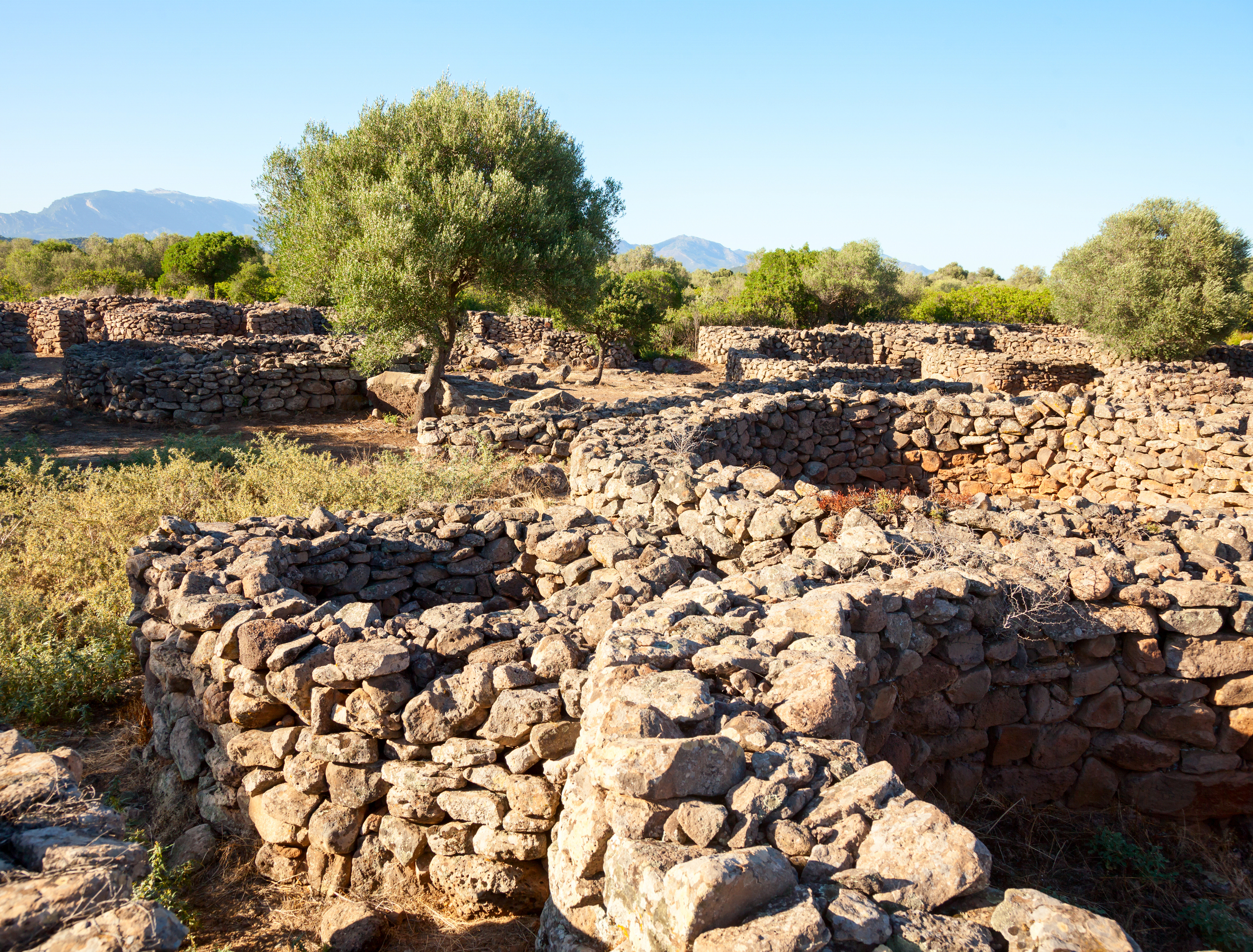 Observarás de cerca, gracias al buen estado de conservación, la construcción civil y de culto de la edad nurágica. La aldea está rodeada por un centenar de cabañas circulares construidas con un zócalo de hileras de piedras y, en origen, cubiertas con frascas. Son sencillas o se articulan en varios ambientes, también para proteger los animales, típicos de una sociedad dedicada a la agricultura y cría, que se abran a un solo patio dotado de pozo. En las paredes se han realizado nichos o huecos. Los suelos son de losas de piedra, con cantos o simplemente batidos. En el centro se había realizado el hogar, circular y delimitado por piedras. Para impermeabilizar las estructuras se usaba arcilla y, quizás, corcho. Las viviendas se agrupaban en tres núcleos, conectados por calles y plazas. Destaca, aislada, la «cabaña 49», quizás la cabaña de las reuniones, caracterizada por una planta curvilínea y provista de banco asiento y frente precedido de vestíbulo.