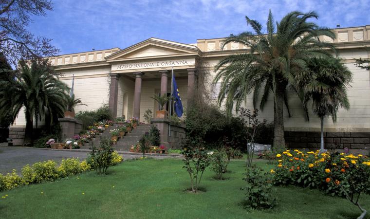 El edificio fue donado por Zely Castoldi, hija de Giovanni Antonio Sanna, concesionario de las minas de Montevecchio que, en 1875, había destinado a su ciudad natal su colección arqueológica y de pinturas. Estos días, forman el núcleo de salida del museo que debe su nombre al empresario. La construcción, realizada entre 1926 y 1932, se inspira en un templo clásico y cuenta con una entrada con una pequeña escalinata de piedra volcánica roja, retrocedido en relación al hilo de la calle. En el centro, surge un cuerpo surgente con columnas dóricas y tímpano, mientras que en las alas laterales, acabadas con enlucida con aspecto de piedra lisa, una cornisa sujeta una barandilla con motivos con cómodas que contienen tondos en relieve.