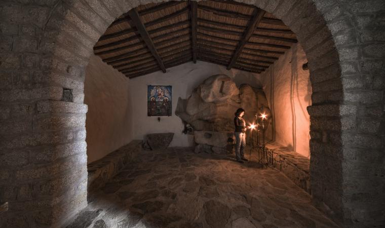 Un lieu ‘sacré’ et authentique où le temps s’écoule lentement, accueillante destination de pèlerinages, qui doit son nom à la dévotion qui caractérise sa communauté et aux 22 sanctuaires disséminés sur son territoire. Luogosanto est un bourg de moins de deux mille habitants au cœur de la Gallura, sur les pentes du granitique monti Ghjuanni, où un site nuragique se détache avec la ‘cabane des réunions’ intacte (et visitable). La fondation du village remonte au début du XIIIe siècle à l’arrivée des franciscains qui y installèrent le couvent, un des premiers réalisés quand Saint-François était encore en vie. Aujourd’hui, une fois restructuré, il accueille le Museum Natività beata Vergine Maria, centre de documentation du Moyen-Âge en Gallura qui retrace les évènements historiques et religieux locaux et expose les ex voto donnés au cours des siècles à la Vierge Enfant. C’est à elle qu’est dédiée la basilique de Nostra Signora di Luogosanto, réalisée par les franciscains en pierres de taille de granite aux formes romanes. Elle conserve une Vierge en bois (‘Reine de Gallura’) et, au XVIIIe siècle, elle reçut le privilège de la porte sainte : à partir des années Soixante-dix du XXe siècle c’est une porte en bronze, un ouvrage de Luca Luchetti, ouverte aux pèlerins tous les sept ans pendant un an. Selon la légende elle fut construite là où la Vierge apparut à deux moines en leur donnant des indications sur les reliques des saints Nicola et Trano. Les moines les trouvèrent sur un relief rocheux : c’est ici qu’en 1227 le sanctuaire fut construit pour les deux martyrs en englobant la grotte où d’après la rumeur, ils vécurent. Connu comme l’ermitage de san Trano, son autel est un bloc de pierre et la grotte forme une abside naturelle.