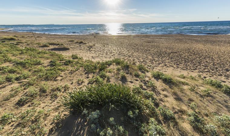 Sorge al limite tra Campidano di Oristano e massiccio del Montiferru, vicino alle splendide spiagge della penisola del Sinis. Narbolia, paese di mille e 800 abitanti, mostra case in basalto con murales raffiguranti scene della sua antica tradizione agropastorale. Oggi agricoltura e allevamento, insieme al turismo, sono anima dell’economia, basata fra XIX e XX secolo anche sulla fabbricazione di calce (nel territorio esistevano 19 fornaci). Il paese è noto per la produzione di cereali, frutta e pregiati vini, da abbinare alle sue specialità culinarie, per esempio in occasione di Saboris Antigus a luglio. I dolci sono tipici delle cerimonie: per Ognissanti i papassini, per Pasqua is pardulas, amarettus, gueffus e mustazzolus per battesimi, matrimoni e feste patronali. A carnevale c’è la sagra delle zippole. La festa più sentita è per santa Reparata a inizio ottobre. A lei è dedicata la parrocchiale, del XVII secolo, con altare barocco (1790). Altro imperdibile edificio di culto al centro del paese è l’antica chiesetta di san Pietro apostolo, celebrato a fine giugno. Sul paese incombe il bastione roccioso del monte Rassu (quasi 500 metri), che digrada in colline coperte da macchia mediterranea. La valle del rio Cunzau separa i monti dala grande piana di Cadreas, ricca di testimonianze archeologiche. Poi la costa, dominata dalle dune di sabbia di Is Arenas. È un piccolo ‘deserto’, rimboschito e stabilizzato a partire dagli anni Cinquanta del XX secolo. La pineta, estesa da Torre del Pozzo a is Benas, termina sulla spiaggia, una delle più belle e lunghe (sette chilometri) della Sardegna. Nell’oasi verde di pini, acacie, lentischi, ginepri, orchidee, palme e prati sorge un campo da golf: le 18 buche sono inserite in armonia con dune e pineta: è uno dei campi più spettacolari d’Europa.
