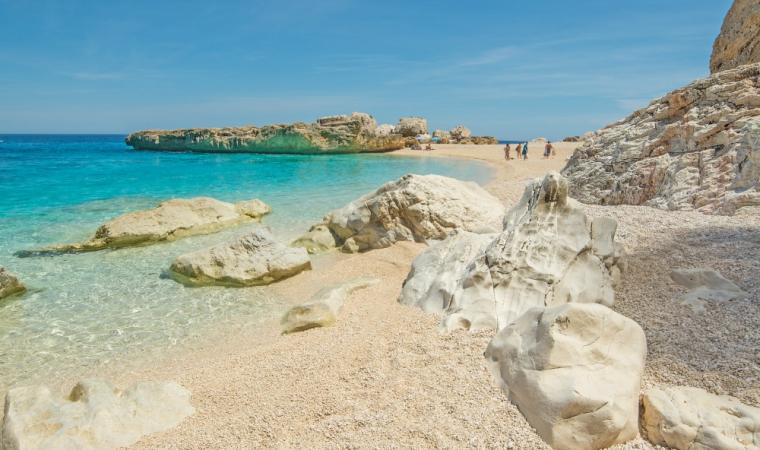 Falesie e bastioni calcarei a strapiombo su acque profonde dalle tonalità cangianti, interrotti qua e là da cale di ciottolini e solcati da codule e canyon che arrivano fino al mare formando spiagge di sabbia morbida e bianca. Ecco i tratti distintivi del litorale di Baunei, 40 chilometri lungo la parte meridionale del golfo, uno dei tratti più selvaggi e suggestivi del Mediterraneo. Sulla costa si adagia la frazione di Santa Maria Navarrese, di fronte all’isolotto d’Ogliastra. Una leggenda lega frazione costiera a una principessa spagnola, cacciata o fuggita dalla Navarra: la giovane nel 1052 trovò riparo da una tempesta in una baia, dove, all’ombra di millenari olivastri, come ringraziamento per lo scampato pericolo, fece costruire una chiesetta bianca. Attorno sorse il paesino incantato sul mare, oggi uno dei centri turistici più amati della costa orientale. Dal suo moderno porto raggiungerai le spiagge-simbolo ogliastrine. Le acque trasparenti e turchesi di Cala Goloritzè, monumento nazionale, sgorgano da sorgenti sottomarine, tra rocce di marmo modellate dal tempo e lussureggiante vegetazione. Sormontata da una grandiosa guglia, è patria di appassionati di climbing. Potrai raggiungere Cala Biriola anche attraverso un lungo trekking: si dischiude alla fine di un bosco di lecci e ginepri. Se scegli barca o gommone, prima di arrivarci immergiti nelle piscine di Venere. Cala Mariolu e la sua ‘sorella minore’ Cala dei Gabbiani, protette da una falesia di 500 metri, colpiscono per le tonalità blu, verde smeraldo e azzurre del mare e per i sassolini tondi, bianchi e rosa, misti alla sabbia, simili a fiocchi di neve. Cala Sisine compare alla fine di un antico letto di fiume ricoperto da alberi secolari: una delle località di mare più belle ha un singolare aspetto di montagna. Infine lo scenario da film di Cala Luna – a metà col territorio di Dorgali – dai suoi crateri calcarei sembra di vedere il mare racchiuso in un’ampolla. Il Supramonte cela anche un mondo sotterraneo segnato dal lavorio paziente dell’acqua, profonde gallerie con curiose stalattiti e stalagmiti si affacciano con aperture sul mare. Luoghi fermi a 800 mila anni fa, come la grotta del Fico e un altro prodigio della natura, la grotta del Miracolo. Dentro capirai il motivo del nome. Lo splendido patrimonio naturalistico è habitat di specie rare e museo archeologico a cielo aperto. A Cala Luna, nella grotta su Marinaiu, sono state trovate tracce dei primi insediamenti risalenti all’Eneolitico. Le testimonianze più significative sono della civiltà nuragica, specie negli altopiani di Margine e di Golgo, dove sono stati ritrovati famosi bronzetti, esposti nel museo archeologico di Cagliari.