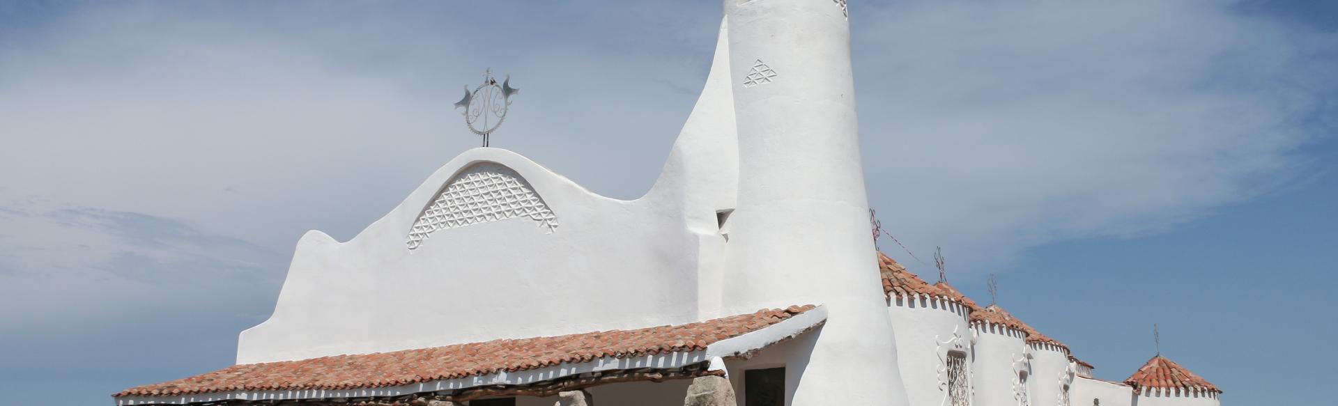 Una croce di ferro si erge sulla cima del campanile bianco, dal profilo curvilineo, che punta al cielo davanti alla baia di Porto Cervo. Proprio il suo profilo a cono detta la forma tondeggiante di tutta la struttura della piccola chiesa Stella Maris. L’edificio, classico esempio di architettura moderna, fu progettato dall’architetto Michele Busiri Vici, nel 1966, fu completata tre pochi anni dopo. La chiesetta si affaccia sul mare del porto della rinomata località turistica: il colore candido e le linee morbide, in perfetto stile ‘neo mediterraneo’, tanto caro al suo autore, si scorgono da lontano, immerse nel paesaggio della Costa Smeralda, mentre i rintocchi delle campane scandiscono il passaggio dei visitatori provenienti da mare o da terra.