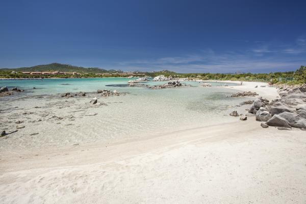 Proseguendo ancora più nord arriverai nelle ‘perle’ della Costa Smeralda, a partire da Razza di Giunco, con i suoi scogli rosati a impreziosire un arenile punteggiato da isolotti e promontori, oltre il quale si estendono Petra Ruja, caratterizzata da pittoresche rocce rosse, e Liscia Ruja, la più ampia spiaggia smeraldina, dove nel bagnasciuga fanno nuovamente capolino i granelli di quarzite rosa.