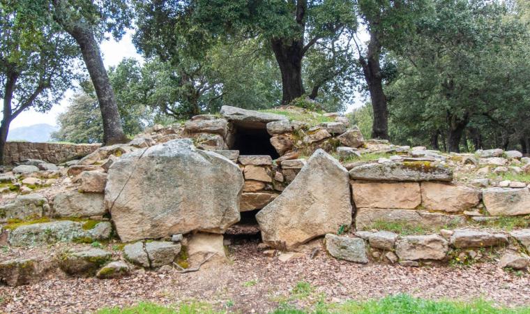 Per visitare le due tombe di Giganti meglio conservate, ti addentrerai tra i lecci. La poderosa stele della prima giace frammentata a terra vicino alla sepoltura, la cui camera funeraria, integra, è lunga dodici metri, fatta di blocchi di granito sormontati da lastroni piatti disposti a piattabanda. A circa 300 metri ecco la seconda tomba, con esedra a ortostati infissi sul suolo.