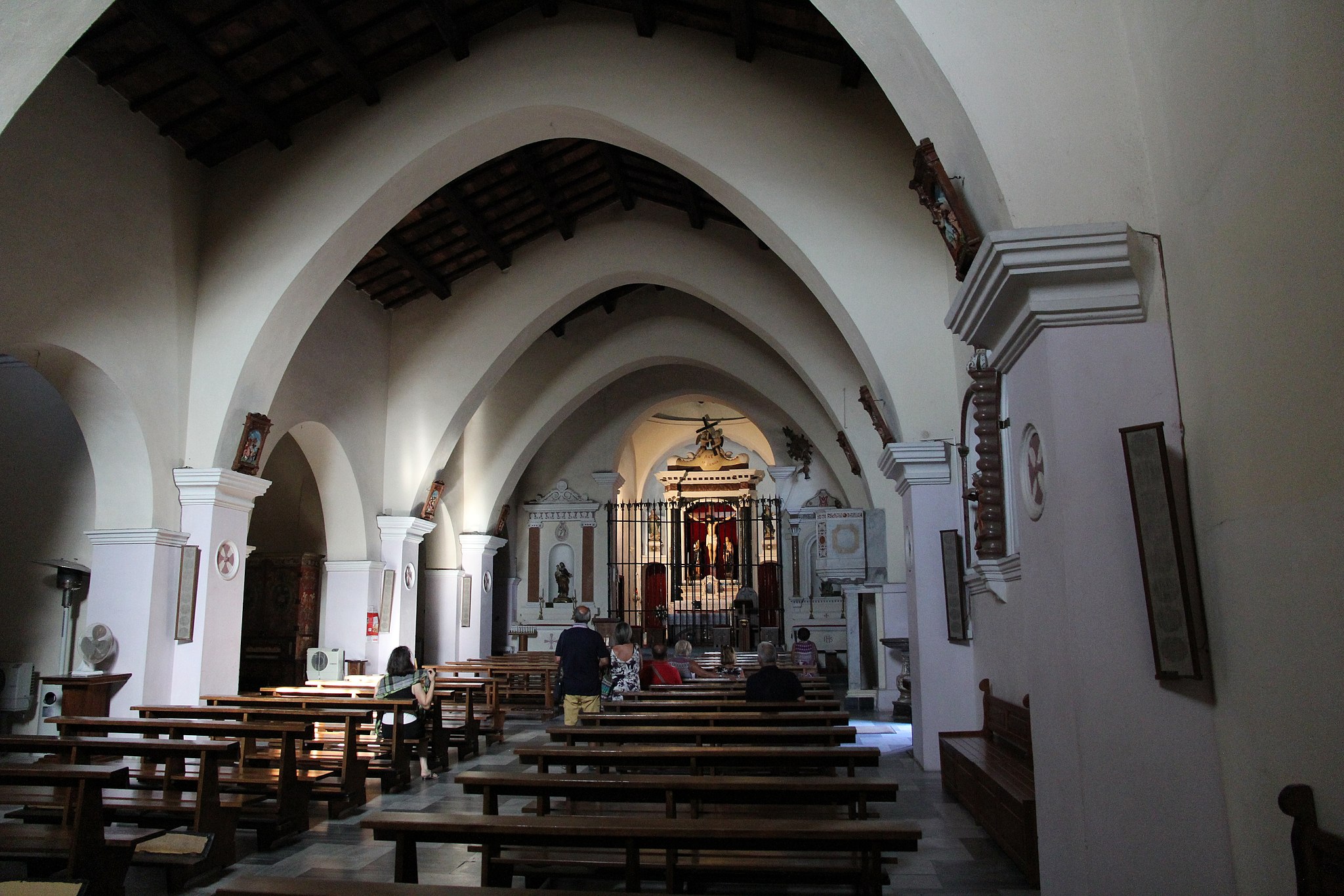 La chiesa del santissimo Crocifisso, oggi parrocchiale del borgo baroniense, è stata ristrutturata una seconda volta nel Settecento in stile barocco piemontese. Presenta una pianta basilicale a tre navate, con copertura in travi di legno a capanna e con ampie arcate. Conserva al suo interno il cristo in legno che tra 1612 e 1667, si dice, abbia sudato sangue e al quale vengono attribuiti innumerevoli prodigi e miracoli, tanto da essere meta di pellegrinaggi da tutta l’Isola. All’interno dell’edificio è conservata anche una santissima Trinità del XVI secolo.