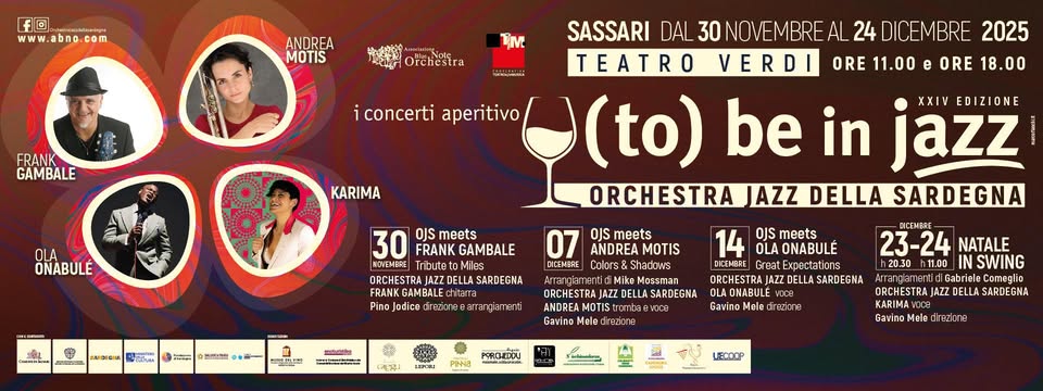 Il festival “(To) be in jazz – I Concerti Aperitivo” ritorna a Sassari per la ventiquattresima edizione, consolidandosi come uno dei principali appuntamenti musicali del periodo natalizio cittadino.