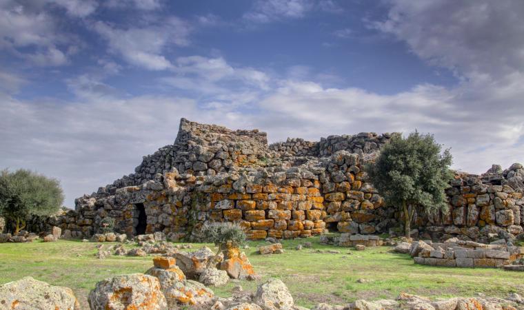 L’appellativo di Gigante rosso è dovuto alle sue maestose proporzioni e alle sfumature rosse dei licheni che colorano i suoi muri di pietra basaltica. Il complesso di Nuraghe Arrubiu, nel territorio di Orroli, si estende per cinquemila metri quadri ed è costituito da una torre centrale (mastio) alta 15 metri – in origine il doppio - circondata da un poderoso bastione formato da cinque torri, a sua volta attorniato da una cinta difensiva con sette torri unite da cortine. All’interno presenta vari cortili. A sud-est sorge un altro antemurale con cinque torri collegate da murature. In totale le torri sono 21. All’interno del mastio, del quale rimane il primo di tre piani, percorrendo uno stretto andito, arriverai alla camera centrale, che racchiude un focolare e un vaso rituale. La copertura a tholos (falsa cupola) è intatta, come in alcune delle torri minori.