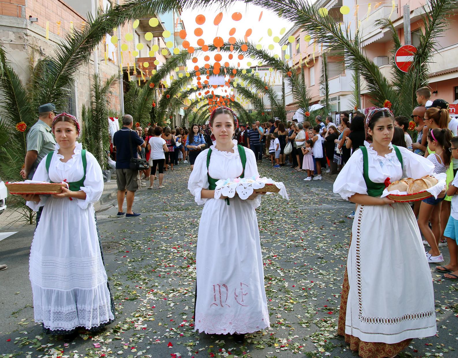 Terra di rinomati vigneti e sorgenti d’acqua purissima, Santadi riscopre le sue origini nel giorno de sa festa manna. I preparativi durano settimane: mani sapienti confezionano gli abiti su misura - broccato e seta per la sposa, orbace nero e finissimo lino per lo sposo -, la scelta dei buoi più forti, l’addobbo delle traccas (carri), la selezione dei canti, tutto nel rispetto della tradizione del ‘matrimonio mauritano’. Il nome risale al tempo dei Vandali (V-VI secolo): maurreddinu è il diminutivo di maurru (moro), oltre a saccheggiare i centri costieri, alcune comunità di ‘mori’ si stabilirono nel basso Sulcis. A fare da contorno al fatidico sì, genitori, testimoni, parenti, invitati, gruppi folk provenienti da varie parti dell’Isola e i cavalieri che contribuiscono al gusto di un rito senza tempo, riproposto a partire dagli anni Settanta del XX secolo.