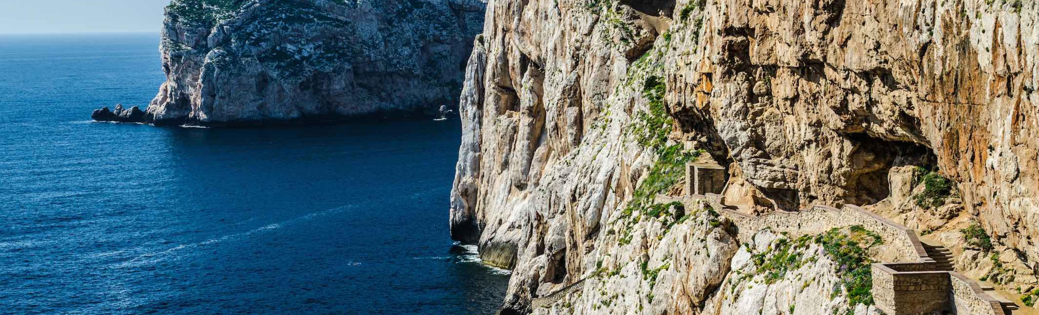 在小城的附近是Capo Caccia卡恰角。而且卡恰角还是著名的Grotta di Nettuno奈图诺洞穴的所在地。坚固的岩壁倒映在水面上,而钟乳石和石柱则形成了另一番美妙的景色。地下盐湖的景色彷如童话一般。