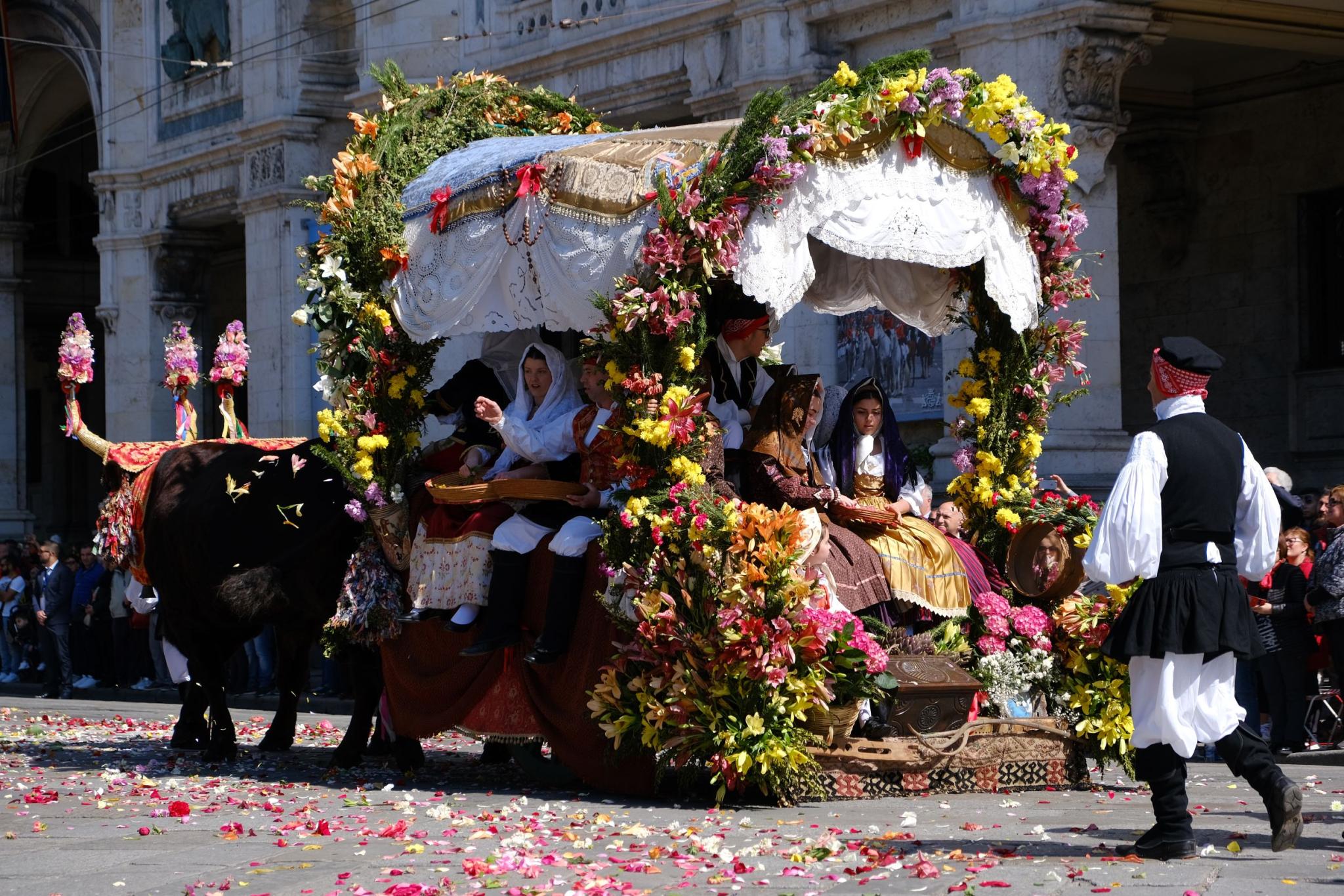 Una processione maestosa di oltre 80 chilometri, una delle più antiche e lunghe del mondo, che tocca l’animo di chiunque vi si trovi immerso, appassiona i sardi che la vivono da sempre e conquista migliaia di turisti, rapiti dall’atmosfera di passione. Portano via con loro fotogrammi inconfondibili e momenti indimenticabili. La processione parte a mezzogiorno dalle viuzze del quartiere storico di Stampace. Il corteo incede su un tappeto colorato di fiori rosa, rossi e gialli ed essenze profumate: è il rituale de sa ramadura. Inizia un viaggio nella cultura di un popolo tra fede e autenticità.