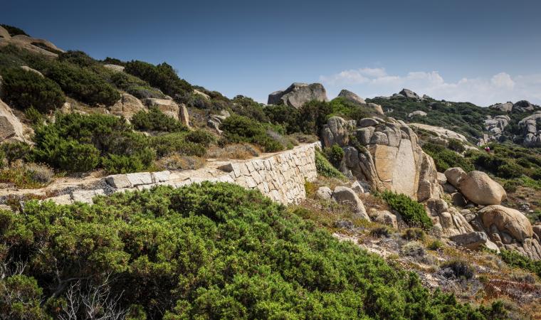 Alla fortificazione militare, parcheggiata l’auto in località Costa Serena, arriverai percorrendo un agevole seppur sconnesso sentiero in direzione Punta Sardegna, immerso nel verde, tra i profumi di ginepro, alloro e mirto e sculture di granito scolpite dal maestrale, passando sopra spiagge e calette meravigliose. La camminata di mezz’ora sarà premiata con la quiete di un ex rifugio militare in riva al mare.