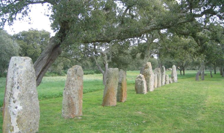 Pranu Mutteddu普拉努.馬特度巨石墓地由地下陵墓、Domus de janas巫婆墳墓、圓形巨石和神秘厚重,擬人化排列的「Menhir」巨石陣組成。 其中一個令人稱奇的石陣由20座「Perdas Fittas」(巨石)組成,自西向東按照太陽運行的路徑而排列。
