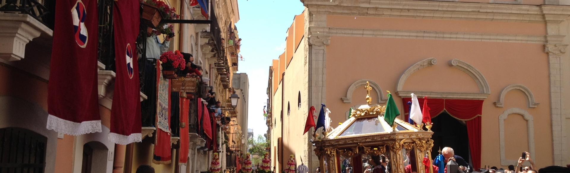 Confusa tra stradine strette, nel cuore di Stampace, quartiere medioevale di Cagliari, sorge la chiesa da dove ogni primo maggio parte una delle celebrazioni religiose più antiche in Italia e più coinvolgenti dell’Isola, la Festa di sant’Efisio. L’edificio originario è duecentesco, costruito sopra una grotta che si apre nella roccia calcarea profonda nove metri, ritenuta per devozione popolare la prigione dove Efisio fu rinchiuso prima di essere martirizzato e decapitato sulla spiaggia di Nora (303 d.C.). La chiesetta fu ampliata e modificata nel 1538, quando sorse accanto l’oratorio, forse progettato dall’architetto piemontese De Vincenti, all’epoca impegnato a Cagliari nella restauro dell’ex collegio gesuita di santa Croce. A fine XVIII secolo nuovi interventi conferirono alla chiesetta l’aspetto attuale, proprio del settecentesco stile barocchetto piemontese. La ricostruzione si concluse nel 1782.