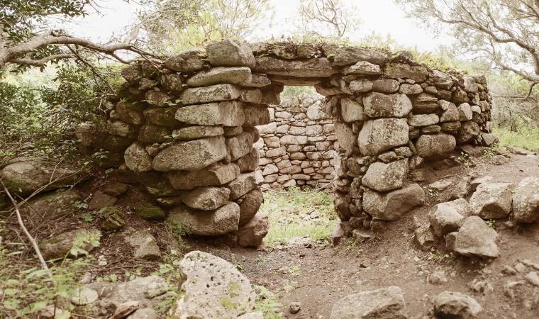 A ridosso dell’area fortificata, lungo il pendio e nella piana a sud-est del nuraghe, visiterai i resti del villaggio. Le capanne, generalmente a pianta curvilinea, sfruttavano anch’esse la morfologia del terreno. Le mura erano composte da blocchi disposti in filari regolari e legati con malta di fango, i pavimenti erano in terra battuta e in alcuni casi incorporavano banconi di roccia. Noterai le tracce di diverse sovrapposizioni murarie: gli ambienti furono oggetto di ristrutturazione e riorganizzazione degli spazi, con aggiunta di vani usati come ‘botteghe’ artigianali. Le capanne, spesso edificate in piccoli agglomerati e separate da stretti corridoi, non erano l’unica tipologia di soluzione abitativa: verso ovest raggiungerai infatti l’area dei tafoni, che contribuiscono al fascino de Lu Brandali. Un passaggio tra le rocce conduce a un gruppo di cavità granitiche, usate dagli abitanti del villaggio sia come rifugi che come sepolture.