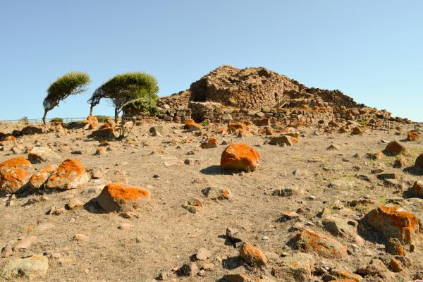 Sites that have fallen into disuse bear witness to the historical mining period. These sites are located in the woods of Mount Onixeddu, Seddas Moddizus and Mount San Giovanni, where the village of Normann is situated. Here, the mine is near the grotto of Santa Barbara, a gem of unspoilt nature, with a small lake, columns of stalactites and stalagmites and aragonite arabesques. As well as industrial archaeological remains, the territory is dotted with prehistoric sites, like the Domus de Janas on the plateau of Murru Moi and, above all, the most important Nuragic complex in the Sulcis area, the village of Seruci, consisting of a Nuraghe complex, a turreted defence wall, a Tomb of Giants and a village with over one hundred huts, among which there is one with an interesting counter-seat at the base of the wall and another with a rectangular courtyard. Various artefacts bear witness to a considerable Phoenician, Punic and Roman presence, based on their interest in the abundant deposits of silver, lead, copper and zinc.