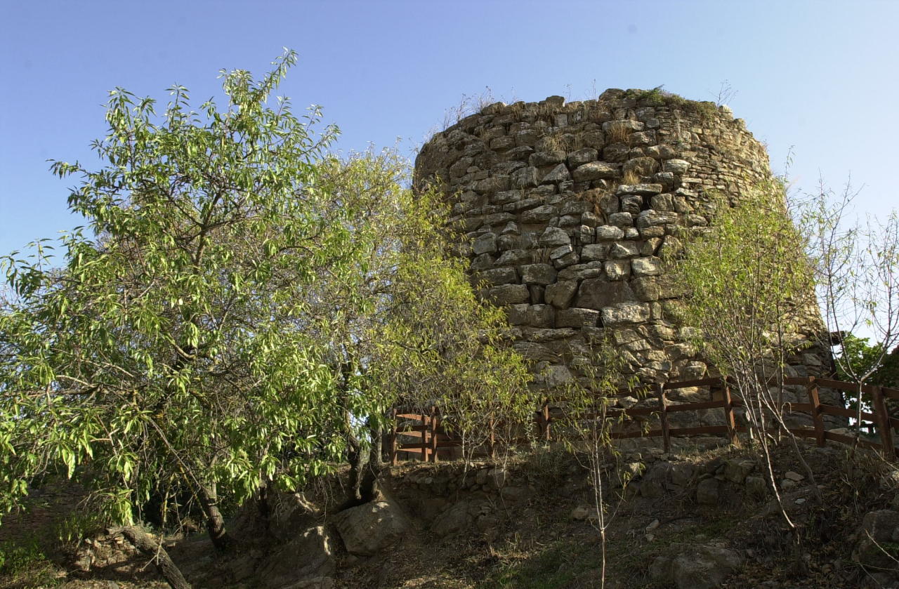 The nuraghe, which dates back to the mid-Bronze Age (15-14th century BC), has a single-layer structure and a truncated cone shape with a diameter of twelve metres and a residual height of ten. It is built with well-worked blocks of calcareous schist arranged in rows, culminating in a false dome (tholos), i.e. missing some of the rows that completed it. The entrance leads into a corridor four metres long, like the wall thickness, which leads to the main circular chamber with a diameter of over five metres. On the wall opposite the corridor you will see two large cells; the one on the left houses a cistern for water, lined internally with opus signinum plaster: it shows signs of having been reused as a burial in the Byzantine era (6th-7th century). This hypothesis is also supported by the finding in the cistern of a bronze buckle dating from the 8th to 9th century. Also on the left there is a stairwell that leads up 17 steps to the terrace. Outside the nuraghe, on the north-east and south-west sides, you will notice some curvilinear walls, which are probably later reinforcement works.