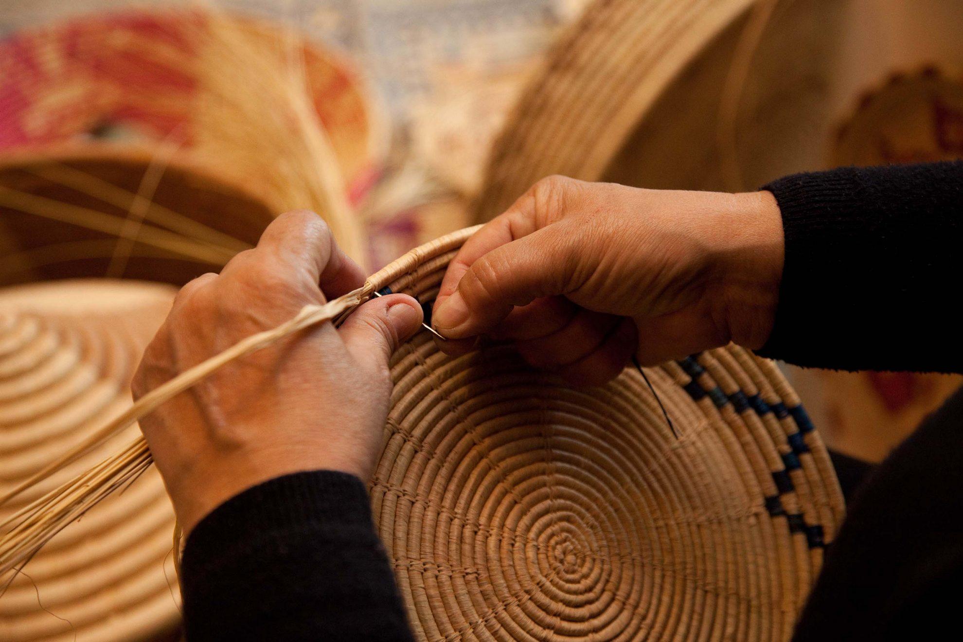 The spirit of Sardinia is intertwined into the weaving of yarn, in the embroidery of a carpet and in the silhouette of an elegant traditional garment. Its spirit is ‘interlaced’ by skilled hands into a corbula of reed or rushes, it is woven into filigree, a Sardinian jewellery-making technique par excellence. The island’s light gleams in the blade of a arresoja, in the reflection of a glass product or in the deep red of a coral necklace. Its fire burns in the forging of wrought iron furnishings. The Sardinian soul lies in each stone sculpture, an archaic symbol of an ancient land. Exploring Sardinia means delving into its most profound and authentic identity through the techniques of adorning a scivedda (a ceramic vessel) and the wood carving of a cascia (a hope chest) and carnival masks, in tanning skins to create footwear or saddles. Traditional and designer arts and crafts form a vital spirit in Sardinia, an essential cultural component of a people that has proudly handed down knowledge and skills for centuries.