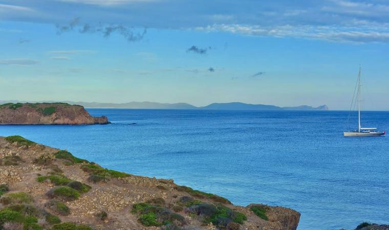 Capo Sperone es un acantilado en el extremo sur de la isla de Sant'Antioco, donde se puede disfrutar de una vista impresionante sobre las pequeñas islas de Vacca, Vitellino y, más lejos, Toro, todas ellas antiguos volcanes que emergieron del agua. Desde la cala o por mar se puede llegar a pequeñas bahías, todas muy bonitas. Sus aguas son transparentes y de un azul tornasolado por los juegos de luz que crea el sol al reflejarse en el fondo del mar, un efecto cromático al que se une la vegetación, sobre todo las grandes extensiones de peonías rosadas.