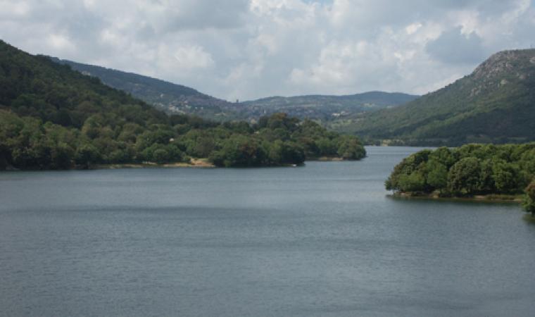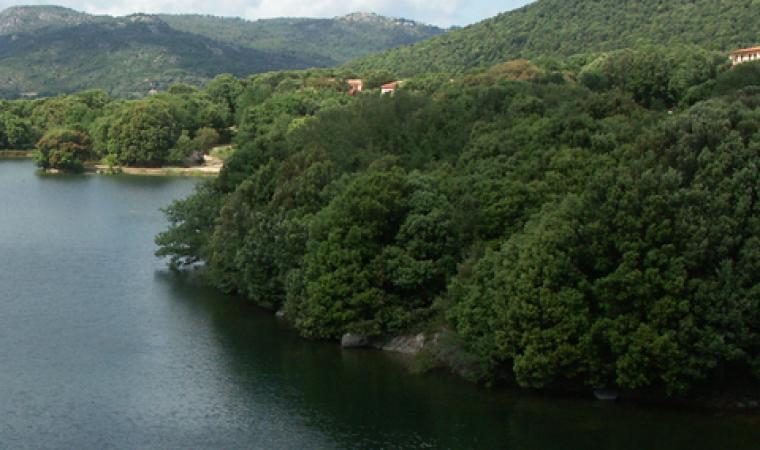 Protetto da rilievi ricoperti di roverelle e macchia mediterranea, che gli conferiscono un candido aspetto, spunta il blu intenso del lago di Gusana. È un bacino artificiale, formato tra 1959 e 1961 nel territorio di Gavoi, da cui dista appena due chilometri. Originato dallo sbarramento del rio omonimo, si stende alla base dell’altopiano di Fonni, perfettamente inserito nel paesaggio, suggestivamente ‘incassato’ tra i monti barbaricini Littederone e Nodu nos Arcos.