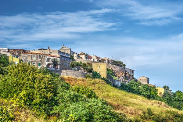 La chiesa è a navata unica, voltata a botte e divisa in due campate da paraste. Sul fianco destro si apre una finestra rettangolare. Nell’abside, a pianta quadrangolare, noterai una particolarità: i sedili in pietra riservati al coro, posti ai lati dell’altare. Durante le sue prime fasi d’uso il santuario fu frequentato assiduamente, per poi attraversare una fase di totale abbandono. Oggi è protagonista di un rito che si svolge ogni anno a Ferragosto: dalla parrocchiale dell’Immacolata Concezione i fedeli partono in processione trasportando il simulacro della Madonna di Bonaria, per collocarlo nella nicchia dietro l’altare. Lo stesso giorno, in serata, avviene il percorso inverso. La salita verso il colle si svolge nel suo ultimo tratto lungo un sentiero lastricato e conduce al piazzale, dal quale la tua visuale si estenderà per oltre cento chilometri sul golfo dell’Asinara e sul Sassarese, fino alla Corsica nelle giornate più terse. Non a caso, la chiesa veniva usata come punto di riferimento nella navigazione, essendo avvistabile dal mare grazie alla posizione sopraelevata. A proposito di edifici in altura, la vetta nord del Tuffudesu ospita anche il simbolo di Osilo, ai piedi del quale si è sviluppato l’abitato: il castello dei Malaspina. Non ci sono fonti certe che ne attestino l’anno di costruzione, ma si pensa risalga al XII secolo. Sicuramente durante il secolo successivo faceva parte dei possedimenti della nobile famiglia Malaspina, che vantava anche al proprietà del castello di Serravalle a Bosa. La struttura è a pianta ovale, circondata da una possente cinta con due torri, una circolare in basalto e una quadrata in tufo.