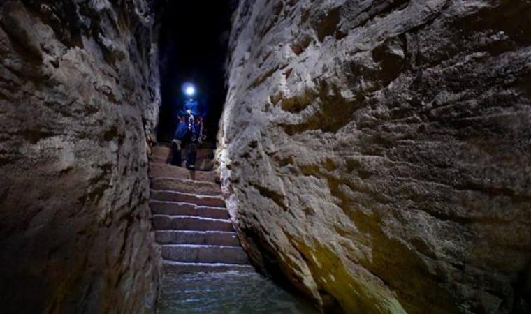 Nel suggestivo scenario ‘vulcanico’ del parco del Monte Arci, in prossimità del 'picco' basaltico di sa Punta e’ Santu Marcu, nel territorio di Morgongiori, si apre sa grutta ‘e is caombus (grotta dei colombi), una ‘frattura’ nella roccia - tecnicamente diaclasi - che si insinua nelle profondità della terra. La fenditura, lunga 150 metri e larga un metro e mezzo, è nota agli archeologi da metà XX secolo: i primi che ne varcarono l’ingresso e discesero il dirupo, arrivati al fondo della spaccatura, rimasero stupefatti: trovarono, perfettamente conservata, una scalinata in pietra basaltica, squadrata e larga un metro, composta da tre rampe, due visibili (di 24 e 22 gradini), la terza coperta da detriti, intervallate da due pianerottoli. La gradinata si insinua lungo la spaccatura, in “un sotterraneo ramificato in camminamenti stretti e tortuosi”, come lo definì il ‘padre’ dell’archeologia sarda Giovanni Lilliu.