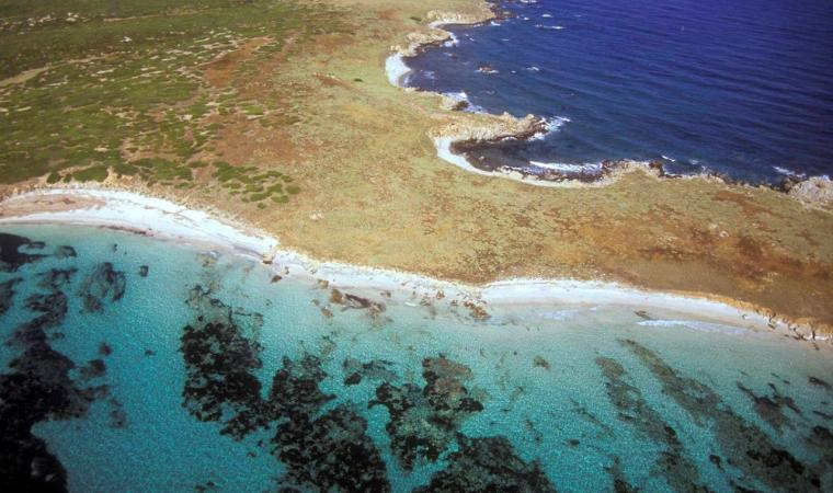 La costa occidentale è un’aspra scogliera: spiccano Cala Maestra e Cala Ponente. Il versante orientale è guarnito di incantevoli cale con spiaggette di sabbia o di chicchi di quarzo, come Cala Valdaro, molto simile a Mari Ermi, che sta di fronte, una delle tre splendide ‘perle’ gemelle del Sinis, insieme a Is Arutas e Maimoni. Da non perdere sull’isola, anche Punta Libeccio e cala dei Pastori. I fondali sono ideali per le immersioni, habitat di crostacei (astici e aragoste), molluschi e un’infinità di pesci: barracuda, cernie, corvine, orate, saraghi. Spesso appaiono i delfini. Non a caso, il sito è di interesse comunitario e zona a tutela speciale.
