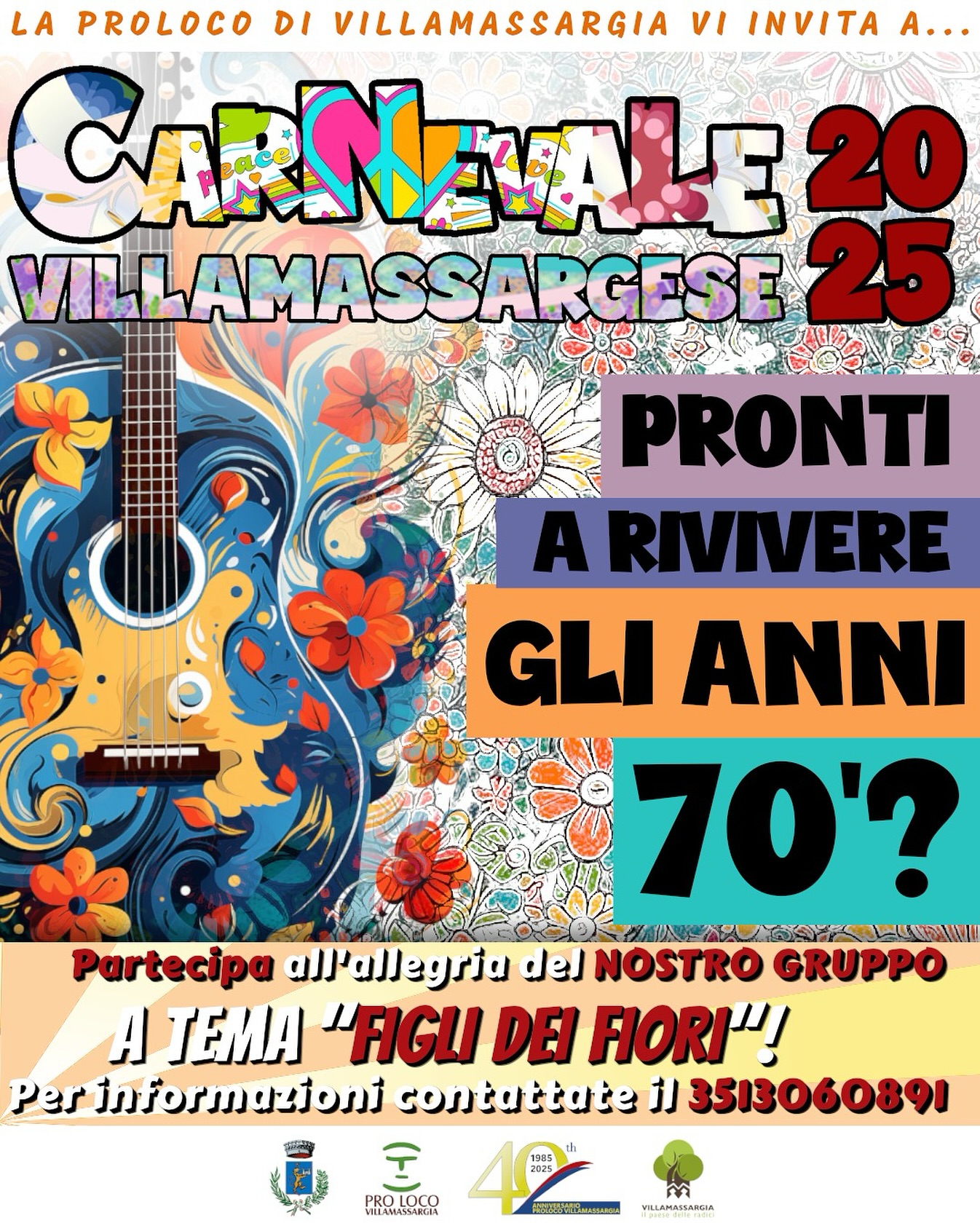 L'atmosfera degli anni '70, della cultura Hippy e dei 'figli dei fiori' è il tema dominante del Carnevale di Villamassargia, la cui sfilata è prevista per sabato 1 marzo 2025.