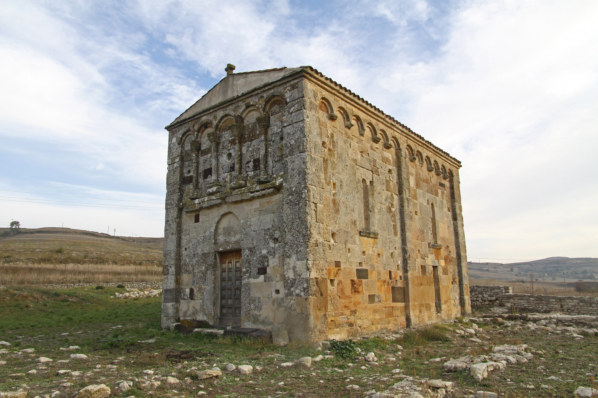 È uno degli edifici più interessanti nel panorama romanico sardo. Insieme alla purezza delle forme architettoniche potrai ammirare il pregio degli affreschi che ne decorano l’interno, risalenti a inizio XIII secolo. La facciata è bipartita da una cornice orizzontale: nella parte bassa si apre il portale architravato, nella parte alta una serie di archetti su colonnine crea una falsa loggia. Ogni colonnina è sormontata da un peduccio con funzione di capitello, decorato da incisioni o rilievi. Fra un archetto e l’altro vedrai conci con alloggi per bacini ceramici. Anche lungo il terminale di fianchi e abside, scanditi da una lesena mediana, corrono altri archetti. Sui fianchi la luce penetra da due finestre monofore. All’interno, l’aula a navata unica si articola in due campate quadrate, voltate a crociera e separate da un sottarco impostato su lesene.