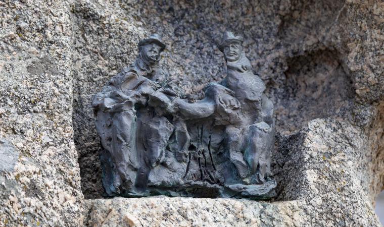 Quando nel 1965 il Comune di Nuoro incaricò Costantino Nivola di progettare un monumento a Sebastiano Satta, lo scultore, reduce dall’esperienza americana a contatto con architetti come Le Corbusier o Saarinen, pensò di recuperare il mondo arcaico e pastorale. Partì dalla personalità del poeta, incarnato e interpretato da piccole figure di terracotta (poi bronzee nella versione finale) in atteggiamenti diversi e momenti differenti di vita.