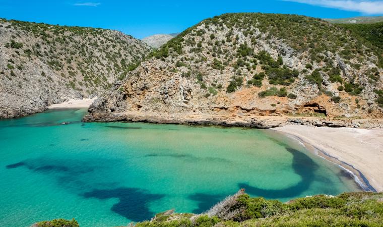 La cala maggiore è una profonda e deliziosa insenatura, quasi un fiordo, con un’ampia e riparata spiaggia di sabbia dai colori tra il bianco, l’ambrato e il dorato, soffice e compatta. Piccoli arbusti di macchia mediterranea spuntano sulle dune alle spalle della distesa di sabbia. Davanti, si affaccia un mare tra i più belli della Sardegna, dai colori turchese e azzurro.