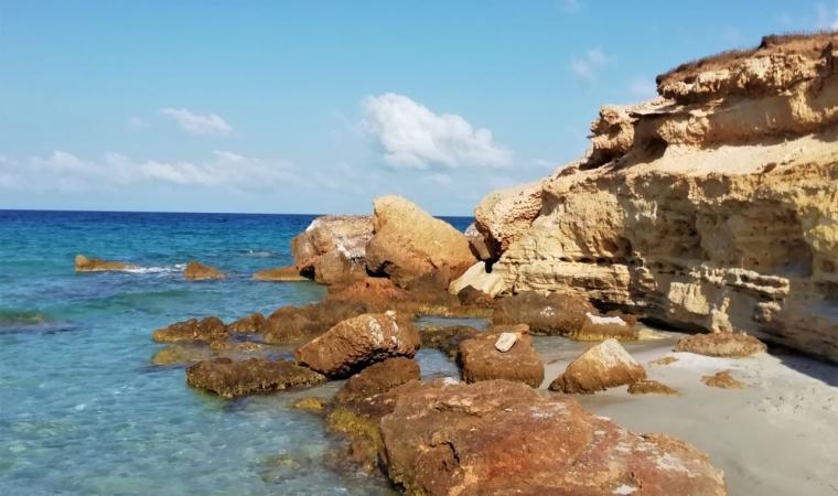 Poco a sud di Capo Mannu, estrema punta settentrionale dell’area marina della penisola del Sinis, un luogo dalla stupefacente concentrazione di bellezze costiere che alterna calette a tratti di roccia calcarea, sorge una lunga spiaggia dall’aspetto oceanico-tropicale. È s’Arena Scoada, che si estende da Punta s’Incodina, vicino alle falesie di su Tingiosu, sino a Putzu Idu, da cui è separata da una piccola scogliera. La spiaggia, che rientra nel territorio di San Vero Milis, da cui dista meno di venti chilometri, mentre Oristano è lontana 25, in origine era s’aena scoada, ossia l’asina senza coda. Poi il nome si è trasformato in ‘sabbia senza coda’, sabbia che è dorata e molto fine, alternata a piccolissimi frammenti di quarzo multicolore, pietre e scogli levigati. Una particolarità caratterizzante sono le rocce calcaree miste ad argilla, usate per le sabbiature. L’acqua è limpidissima, di colore verde-azzurro, il fondale sabbioso digrada dolcemente. Da qui ammirerai panorami che si aprono verso l’isola di Mal di Ventre. L’arenile è molto frequentato da appassionati di kite e windsurf e mette a disposizione ampio parcheggio e bar.