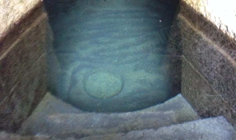 Nei periodi di piena l’acqua traboccante scorre in una canaletta scavata sul pavimento del vestibolo e viene convogliata in una seconda piccola fonte, riproduzione in scala minore della principale. Il pozzetto è costruito alla base di un recinto esterno curvilineo e dotato di canaletta con gocciolatoio finemente lavorato. Sopra c’è un archetto, mentre sul fondo una fossetta consente la decantazione.